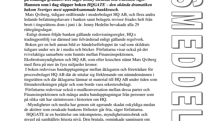 Ny bok: HQGATE - den okända dramatiken bakom Sveriges mest uppmärksammade bankkrasch