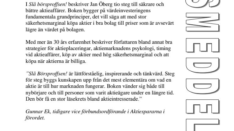 Ny bok: Slå börsproffsen - tio steg till bättre aktieaffärer av Jan Öberg