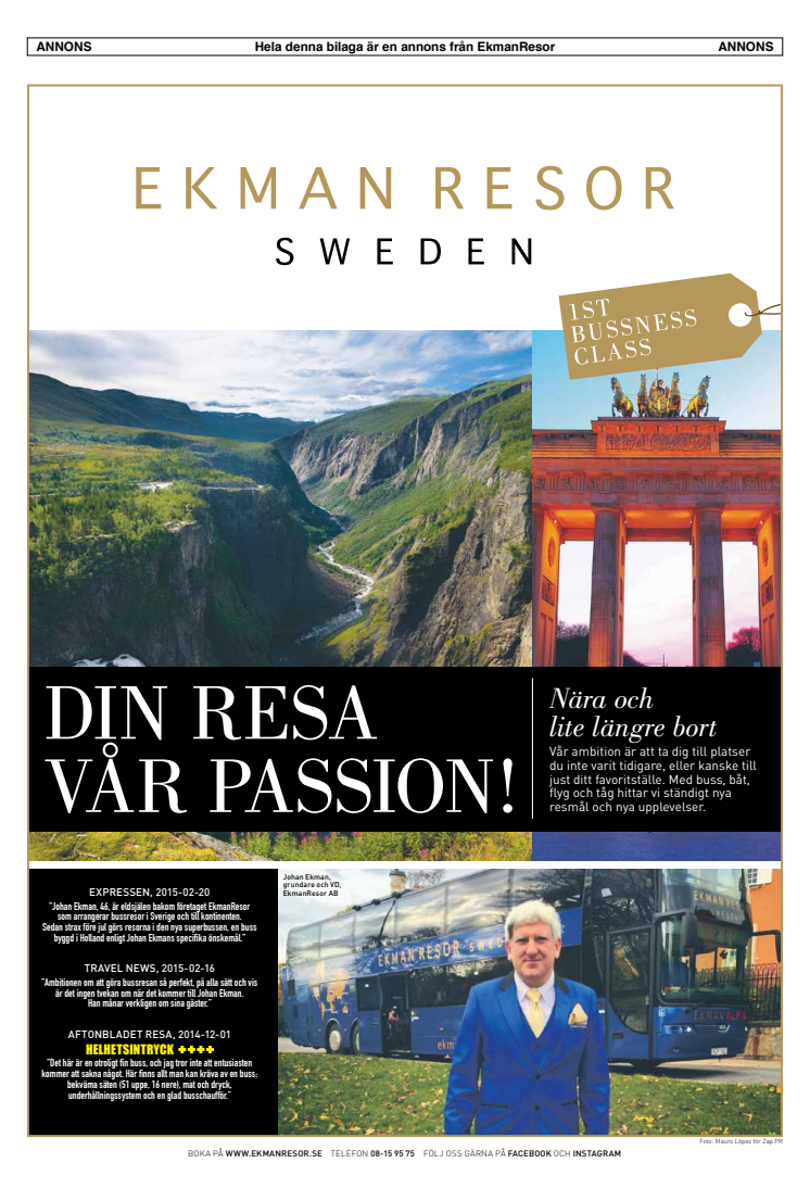EkmanResors Reseprogram 2015 är äntligen här! Med buss, båt, flyg och tåg hittar EkmanResor ständigt spännande resmål och nya upplevelser, men de klassiska pärlorna finns förstås också med i reseprogrammet – Se bifogat dokument.