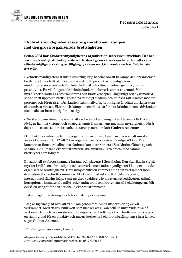Ekobrottsmyndigheten vässar organisationen i kampen mot den grova organiserade brottsligheten