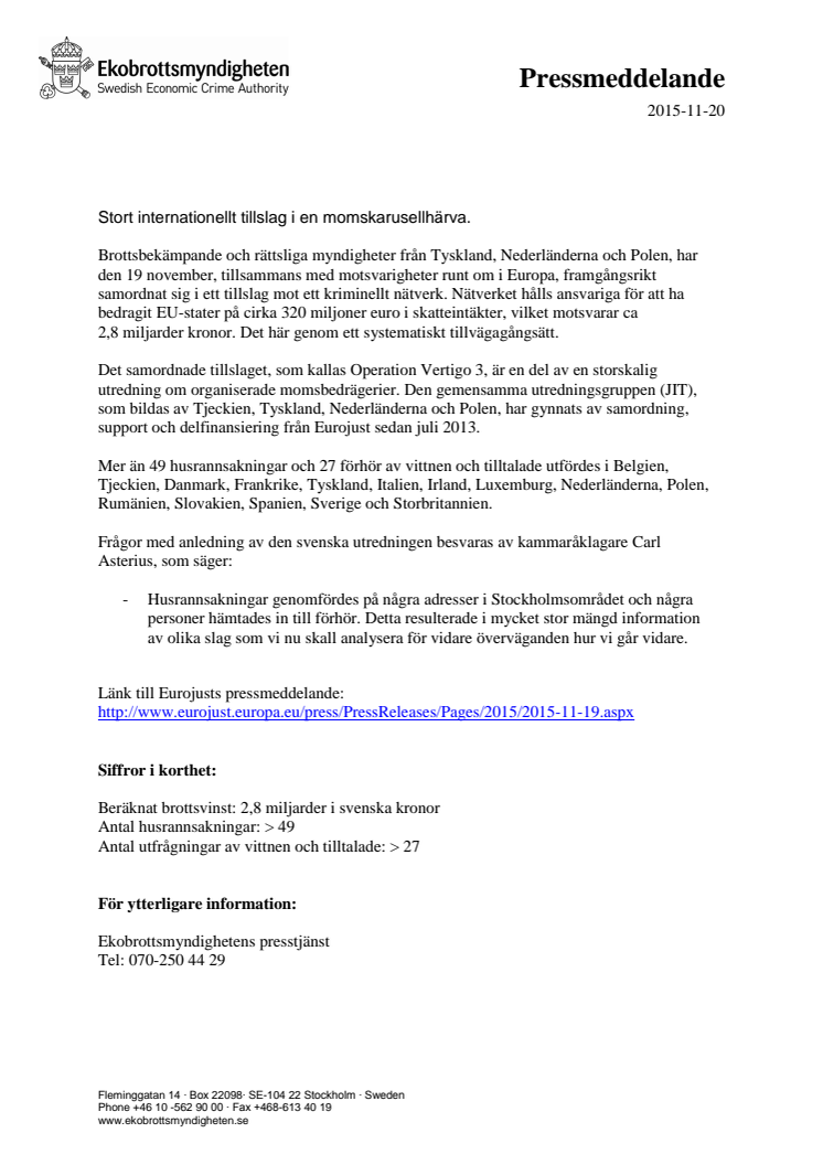 Stort internationellt tillslag i en momskarusellhärva