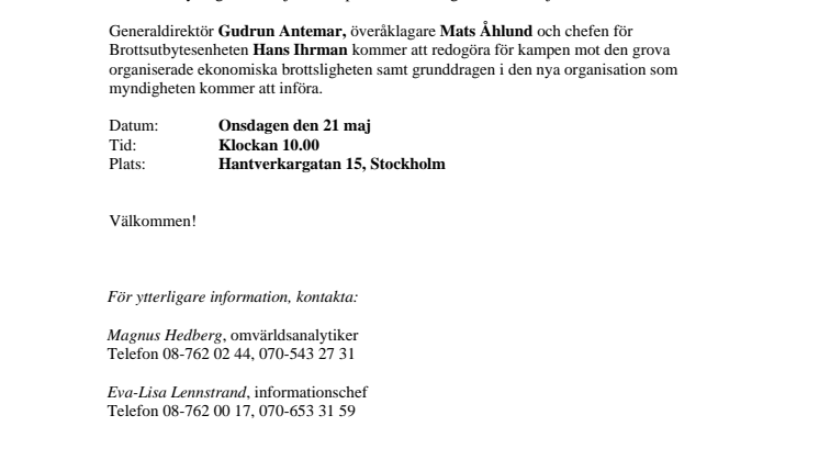 • Gemensamt pressmeddelande från Ekobrottsmyndigheten och Åklagarmyndigheten