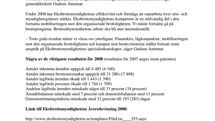 • Goda resultat för ekobrottsbekämpningen halvårskiftet 2008