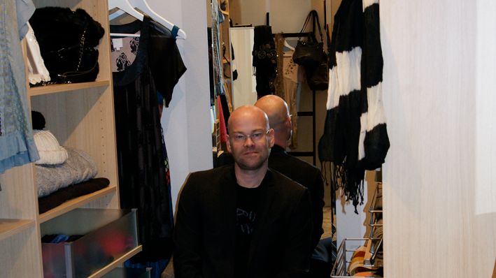 Jan Rundgren, designer och trendexpert, presenterade sin personligt inredda walk-in closet – utrustad med några av Sentens Förvarings specialiteter: Utdragbara stövelhållare, byx- och bälteshållare, slipshängare, skohyllor, svängbara klädstänger, utdragbar spegel och tvättkorg.