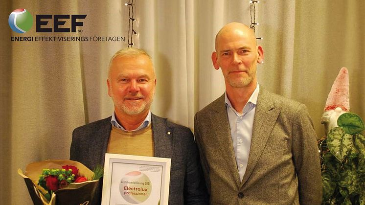 Priset, som delades ut den 7 december under EEF’s traditionella glöggmingel, togs emot av Peter Sundqvist, försäljningschef för tvättstugor i flerbostadshus på Electrolux Professional.