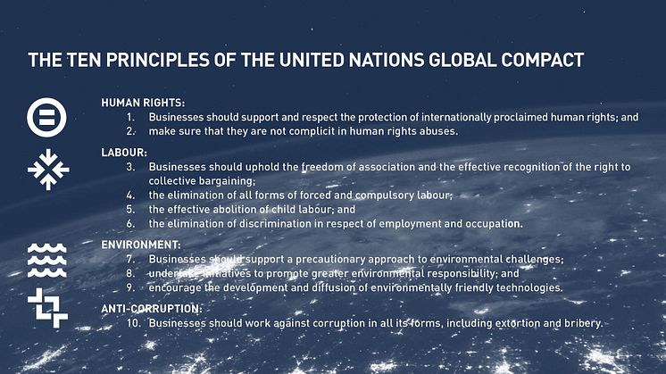 FN: s Global Compact är ett initiativ från FN:s tidigare generalsekreterare Kofi Annan som ”En global pakt med gemensamma värderingar och principer som kommer att ge den globala marknaden ett mänskligt ansikte”. Det lanserades år 2000 och har idag vuxit till att bli det största nätverket för hållbarhet i världen med mer än 10 000 företag i över 160 länder. Alla med samma ansvar att vidta åtgärder för att stödja FN: s hållbarhetsarbete genom Hållbara Utvecklingsmål (SDG).