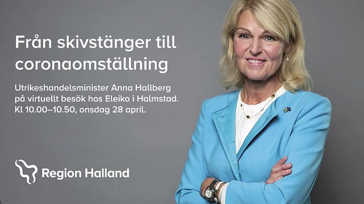 Utrikeshandelsminister Anna Hallberg gjorde ett digitalt företagsbesök hos Halmstadföretaget Eleiko i samarbete med Region Halland inom ramen för kampanjen Hela Sverige Exporterar. Besöket är en del av en rundresa med besök i Sveriges alla regioner som inleddes 2020 inom projektet Hela Sverige Exporterar. Den 28e april var det Region Hallands tur för företagsbesök och rundabordssamtal, där Eleiko