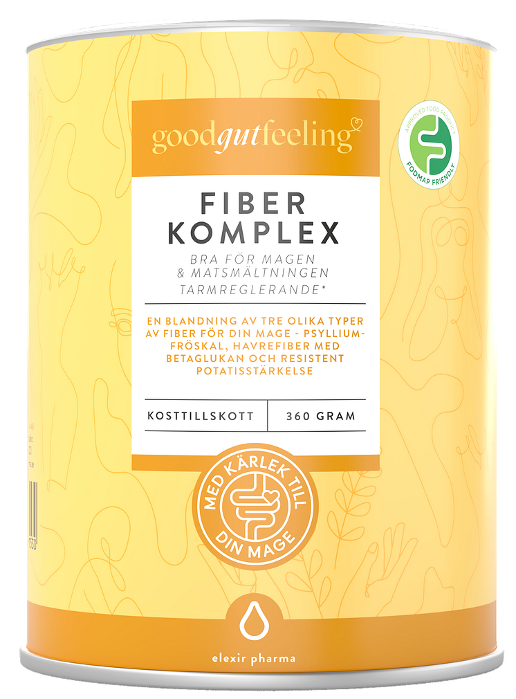 Utöver Fiberkomplex ingår även produkterna Mjölksyrabakterier + Enzymer och Silicolgel i Elexir Pharmas ”Good Gut Feeling”-serie.