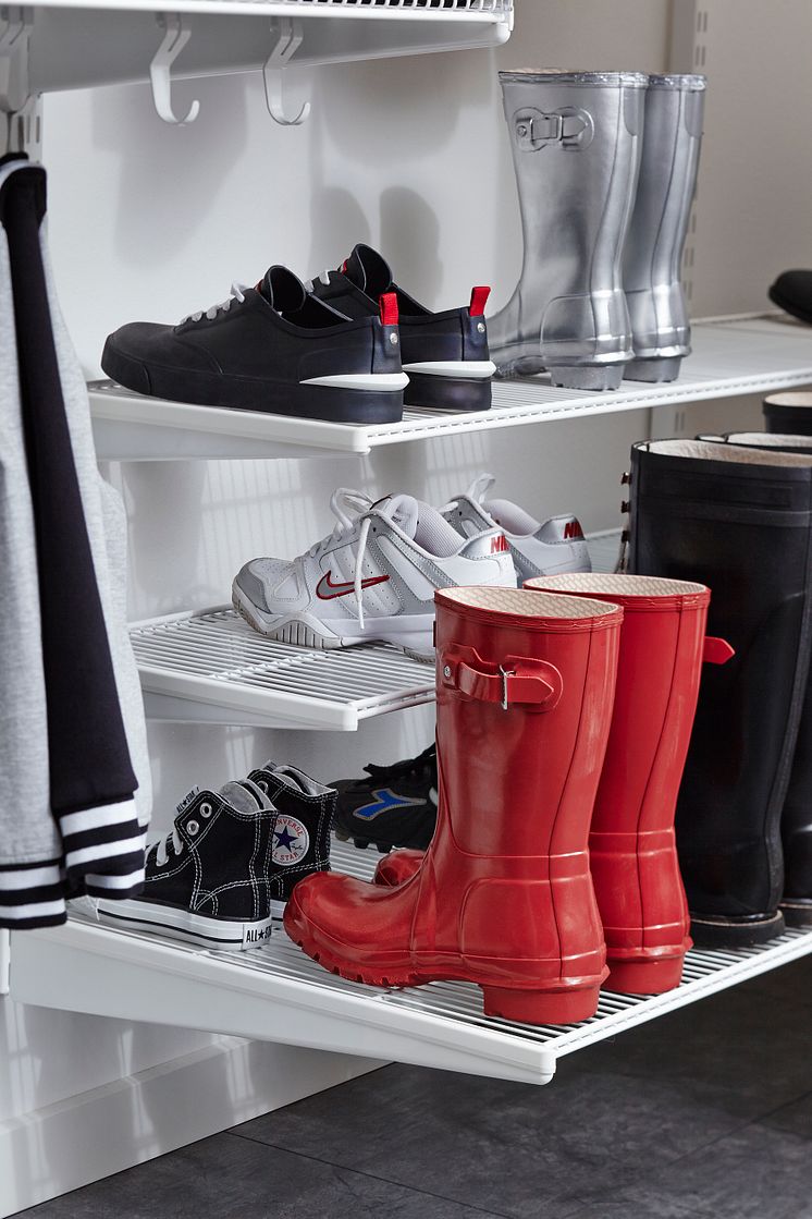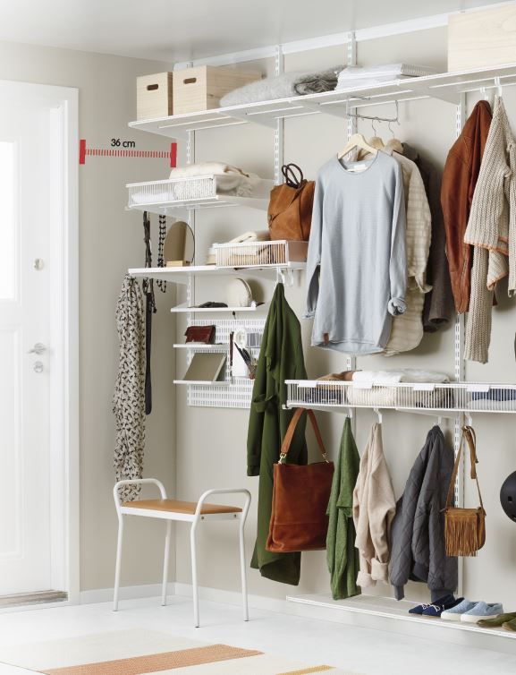 Rannsaka dig själv – vad är logiskt att förvara i hallen? Kanske är det så att det finns saker där som kan förvaras någon annanstans. Alla bör ha en egen plats för sina saker hemma, så även i hallen. Genom att märka upp vem som har vad var underlättar när familjen behöver sina saker. Flytta upp det du inte använder ofta på översta hyllan. Få upp sakerna från golvet. Ju mer golv du ser desto mer ordning och det blir lättare att städa.