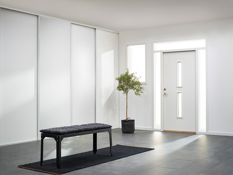 Hallen är det första rum du möter när du kommer hem - och det första intrycket består! Hallen ska vara både praktisk och välkomnande, vilket är lätt ordnat om du har ett smart och funktionellt förvaringssystem. Vill du dölja dina saker kompletterar du med skjutdörrar. Speglar på dörrarna gör att hallen känns större.