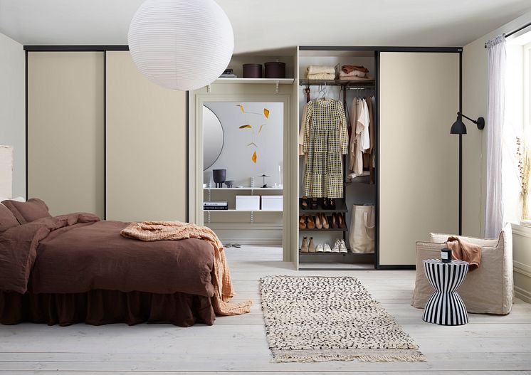 Visste du att du kan skapa utrymme med skjutdörrar? Genom att montera skjutdörrar mellan golv och tak samt mellan vägg och vägg utnyttjas varje minsta millimeter i rummet - på ett sätt som inte är möjligt med en vanlig dörr. Du kan t.ex. placera ett nattduksbord eller en fåtölj på den plats som dörren till en traditionell garderobsdörr hade behövt för att kunna öppnas. Funktioner som underlättar i vardagen kombinerat med nya inspirerande färger och klassisk design skapar en helhetskänsla.