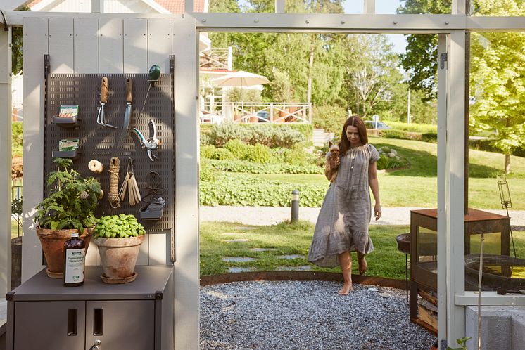 – Fantastisk! Nu kan jag andas då jag går in i förrådet. Det går även att stanna här och pyssla en liten stund. Elfa förstod direkt vilka behov vi hade utifrån trädgårdsredskap och liknande, så klockrent. Lite compact living-känsla. Visst är det fortfarande litet, men överblicken underlättar enormt. Förut kastade jag in saker och smällde igen dörren.