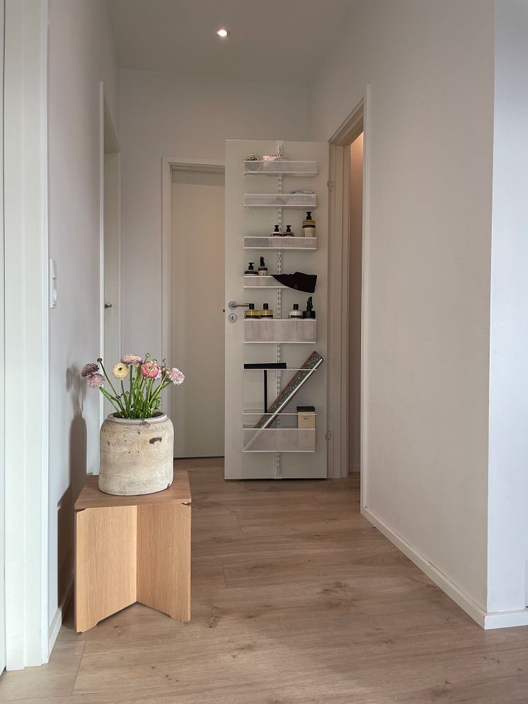 Ett knep för att maximera förvaringen i så här trånga utrymmen är att utnyttja insidan av dörren till rummet ifråga.
