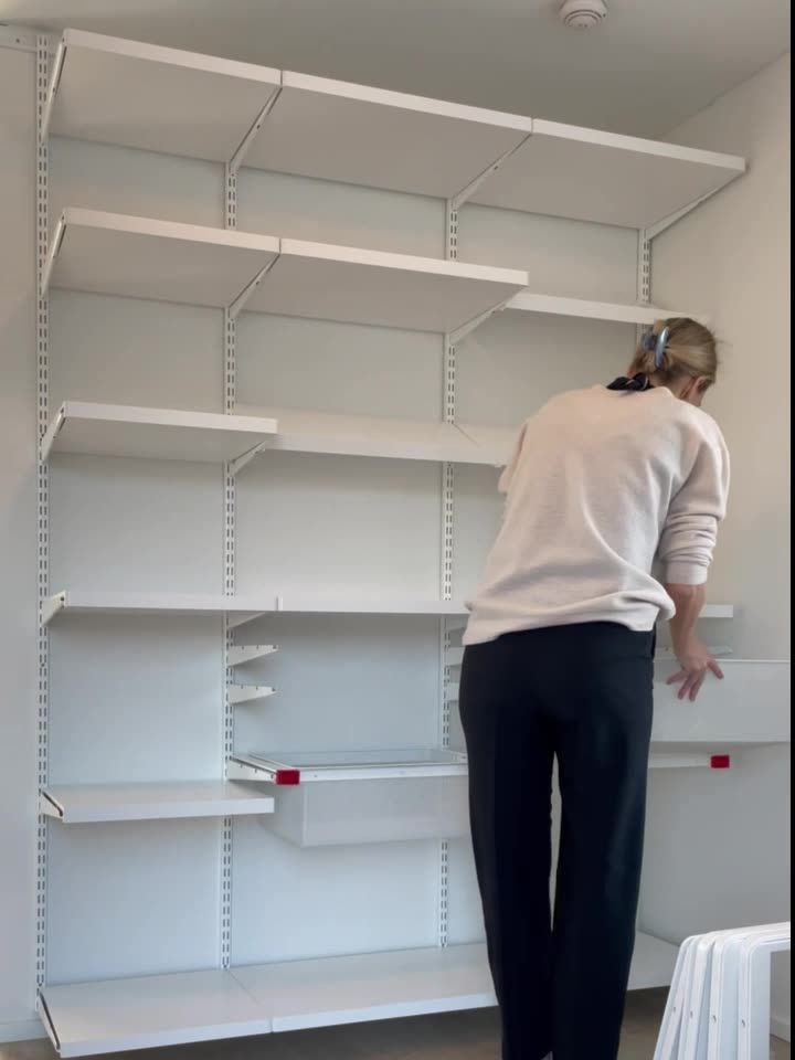 Här behövde team ordning och reda från Elfa använda sin mångåriga expertis och omfattande utbud för att plocka fram förvaringsförslag. Detta resulterade i en vägghängd lösning med specialanpassade längder på hyllorna för att riktigt utnyttja exakt all väggyta.