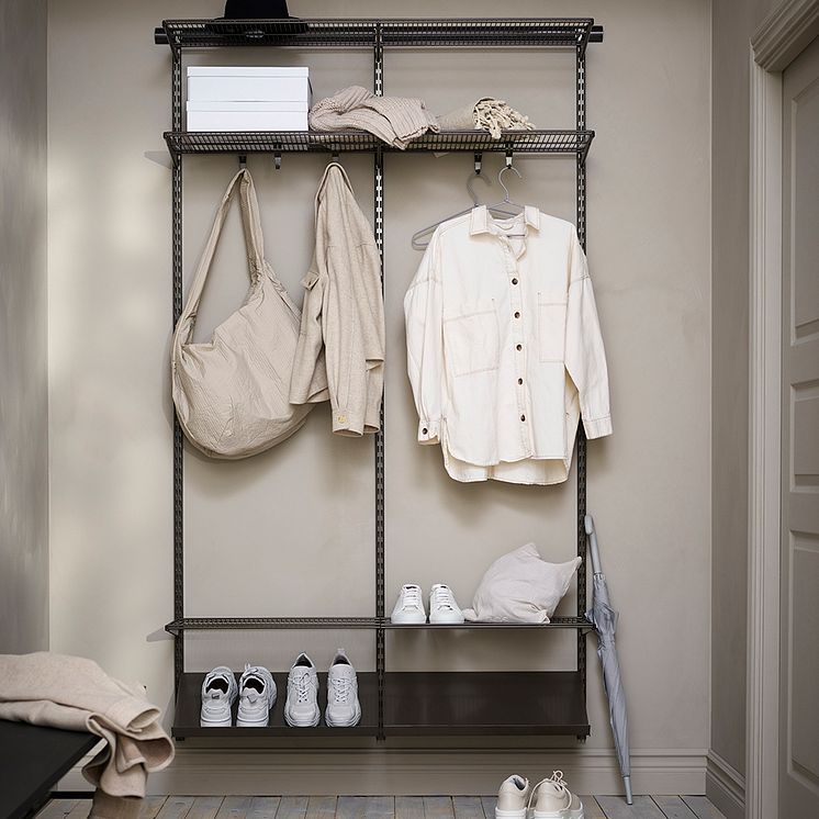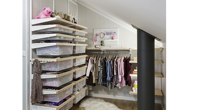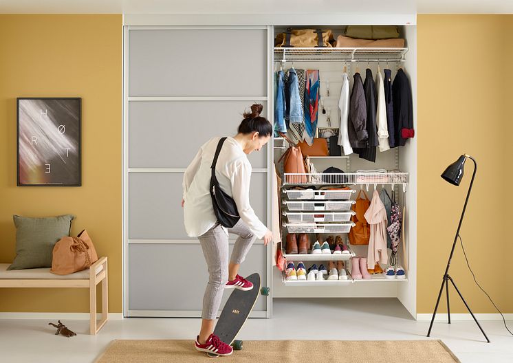 – Vi svenskar köper allt mer kläder och textilier, cirka 14 kilo om året per person. Så det är inte särskilt konstigt att vi saknar plats för att kunna förvara allt. Men förvaringslösningarna blir allt mer effektiva så har man svårt att göra sig av med saker är flexibel hållbar förvaring vår lösning på bättre ordning och harmoni hemma, säger Christine Dalman på Elfa.