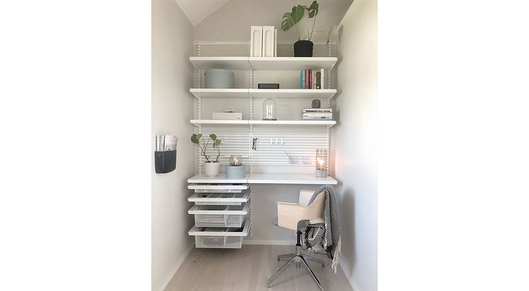 • Elfa_ Dela av rummet och skapa en effektiv förvaringsvägg.