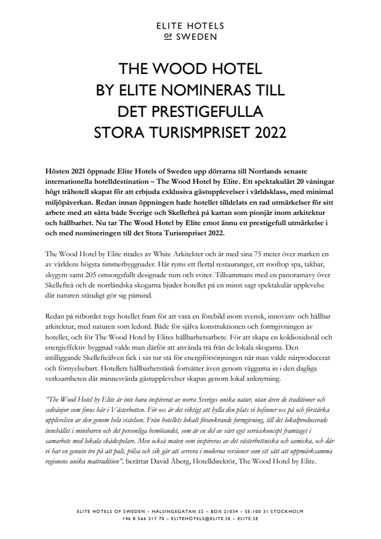 The Wood Hotel by Elite nomineras till det prestigefulla Stora Turismpriset 2022_Pressmeddelande.pdf