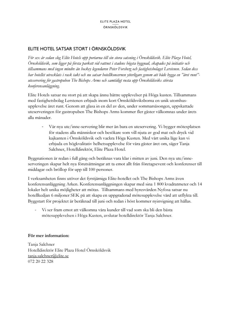 Elite Hotels grundades 1991 av Bicky Chakraborty, vars vision om att återställa vackra hotell till sin forna glans lever idag vidare genom hans dotter och Elite Hotels ägare Caroline Chakraborty. Vi fortsätter dessutom att skapa helt nya hotellupplevelser med mål om att göra dem till ortens stolthet och självklara medelpunkt. Idag erbjuder vi ett fyrtiotal centrala hotell över hela Sverige, gastropubkedjan The Bishops Arms, Vana Spa och många unika restaurangkoncept.