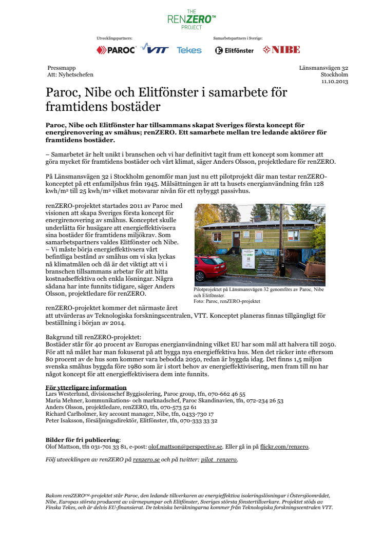 Paroc, Nibe och Elitfönster har tillsammans skapat Sveriges första koncept för energirenovering av småhus; renZERO. Ett samarbete mellan tre ledande aktörer för framtidens bostäder.