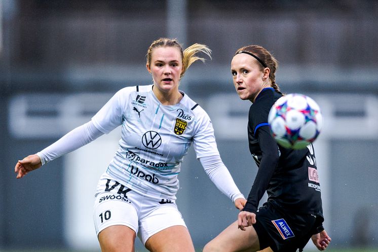 Efter paus var det Umeå IK som startade bäst och efter en kommunikationsmiss i Växjöförsvaret kunde Thea Bäckström snappa upp bollen och placera den i öppet nät. En dryg timma in i matchen kom tvåan. En fin vänsterhörna nickades i mål av lagkaptenen Tilda Sörlén. Växjö försökte närma sig och hade bland annat en boll i överliggaren. Men några mål gjorde man inte och Umeå IK vinner Svenska Spel F19 2022.