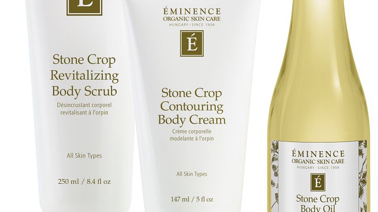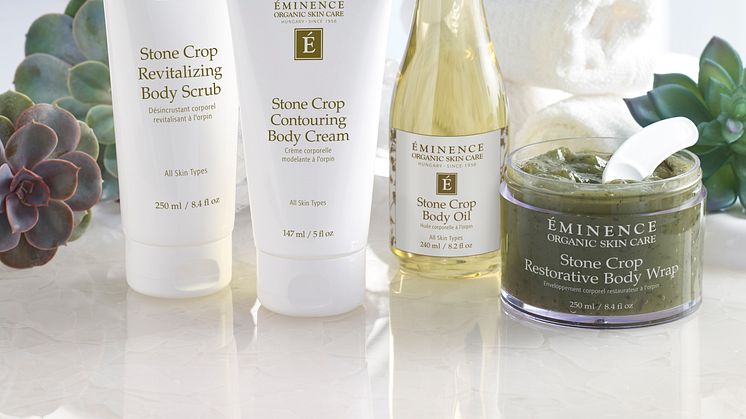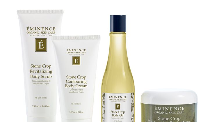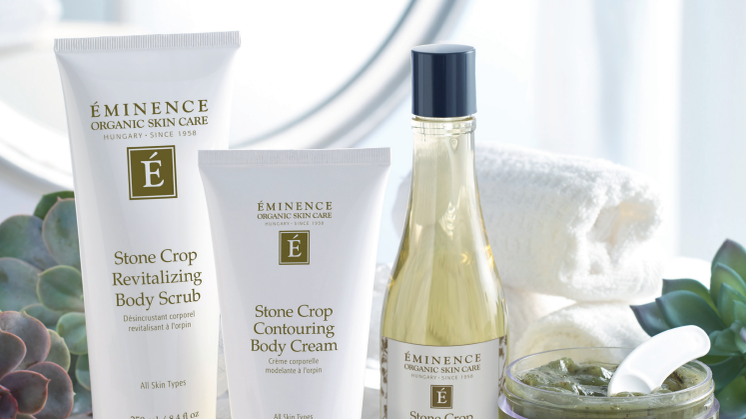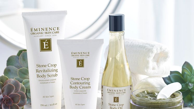 Éminence Organics med sitt ursprung ifrån ungerska spa-traditioner har nu utvecklat den nya kroppsserien Stone Crop Body Collection som tar kroppsvård och spabehandlingar till en helt ny nivå. Denna serie levererar både upplevelse och resultat utöver det vanliga. Produkterna bygger på en av Eminencé signumingredienser – Stone Crop (fetbladsknoppsväxt) och andra aktiva ingredienser som gör denna serie unik.