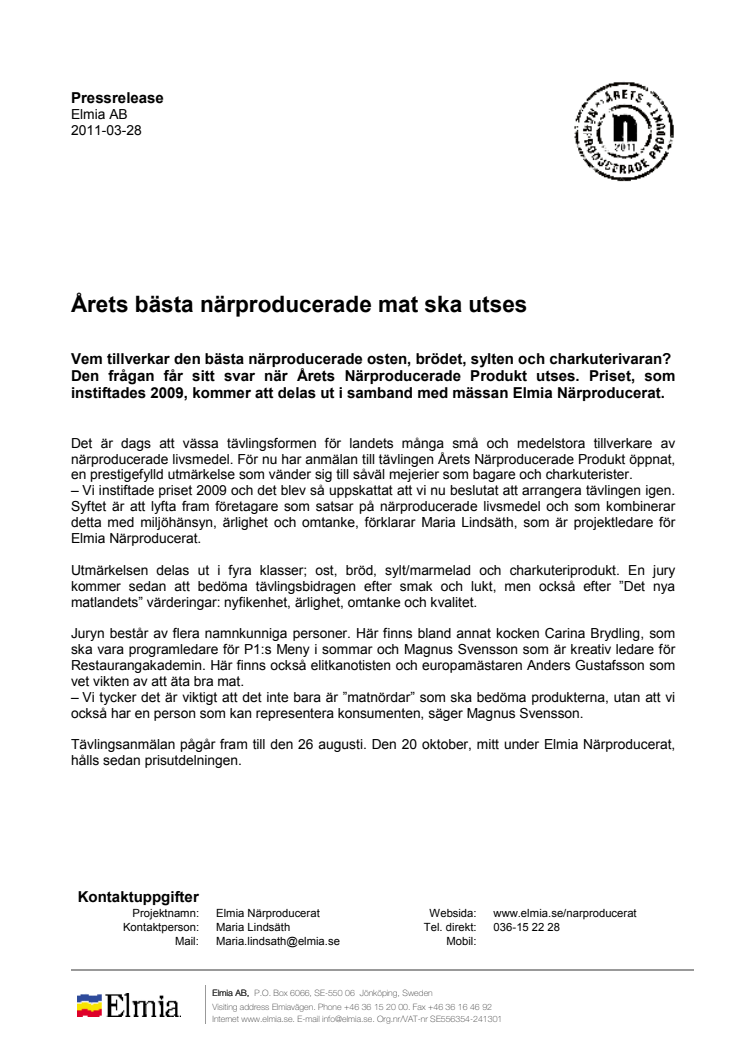 Den frågan får sitt svar när Årets Närproducerade Produkt utses. Priset, som instiftades 2009, kommer att delas ut i samband med mässan Elmia Närproducerat.