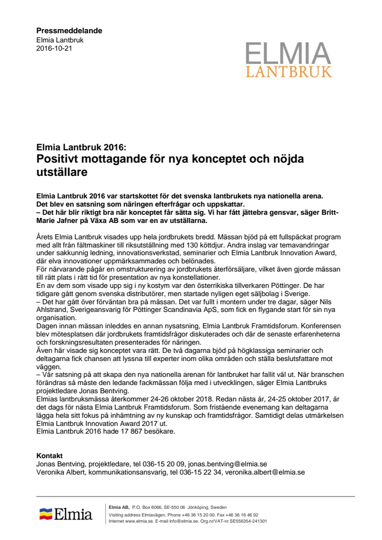 Elmia Lantbruk 2016 var startskottet för det svenska lantbrukets nya nationella arena. Det blev en satsning som näringen efterfrågar och uppskattar.