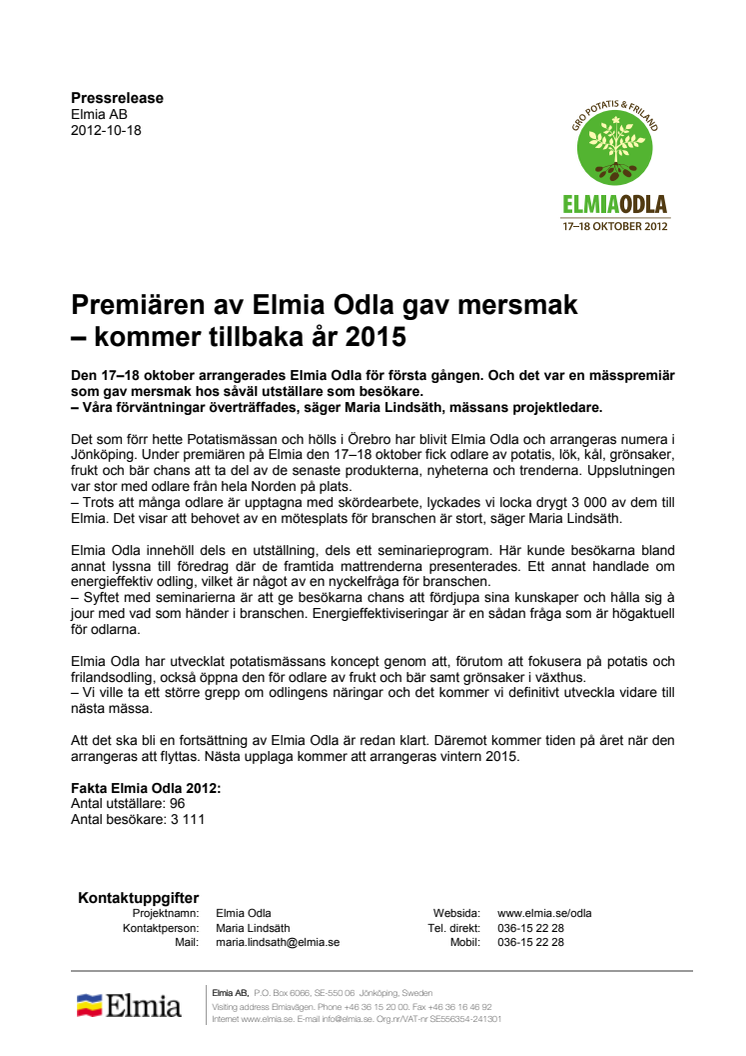 Den 17–18 oktober arrangerades Elmia Odla för första gången. Och det var en mässpremiär som gav mersmak hos såväl utställare som besökare.