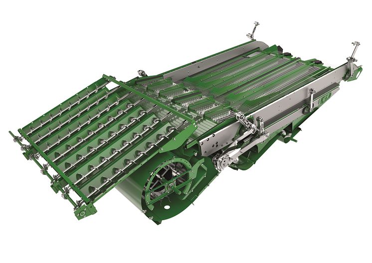 Ett rensverk i en lättare och starkare konstruktion med nya materialval som genom sin lägre vikt bidrar till en lättare maskin och därigenom mindre markpackning. FOTO: John Deere.