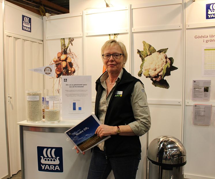 – Här ser man tydligt skillnaden i utsläpp mellan gödsel från Yara respektive gödsel från Ryssland, säger Inger Hyltén-Cavallius om rören på disken.