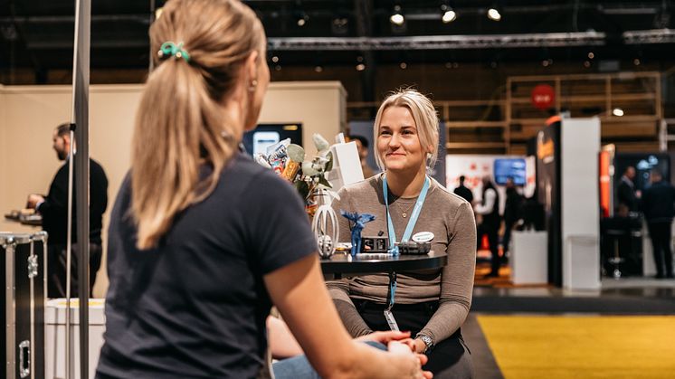 Elmia Subcontractor 2023 - möte i montern mellan utställare och besökare
