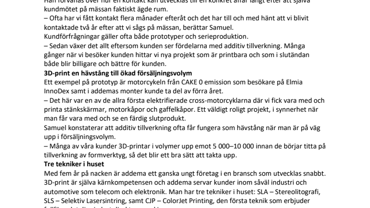 Samuel konstaterar att additiv tillverkning ofta får fungera som hävstång när man är på väg upp i försäljningsvolym.