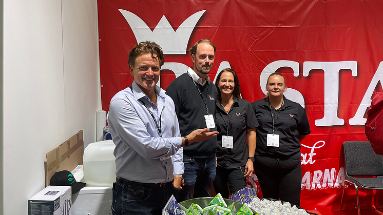 Mikael Tervaniemi, vd på Rasta, tillsammans med Martin Barklund, Rasta Grums, Marie Lennartsson, Rasta Ödeshög, och Amanda Johansson, Rasta Ödeshög. Foto: Elmia