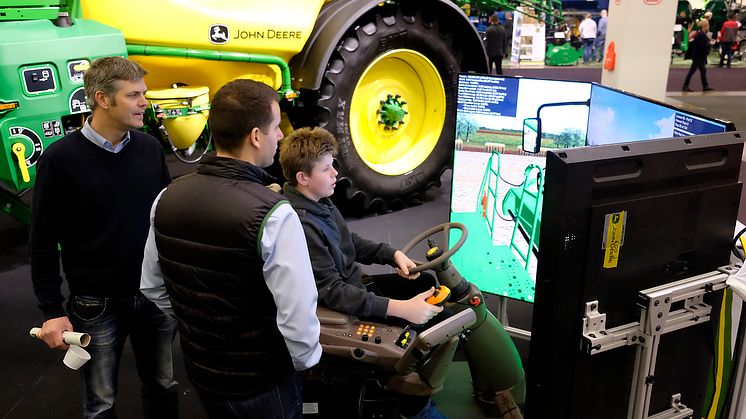 Redan i vinter hoppas John Deere att det ska gå att boka in sig på träning i deras skördarsimulator, som belönades med guld i Elmia Lantbruk Innovation Award.