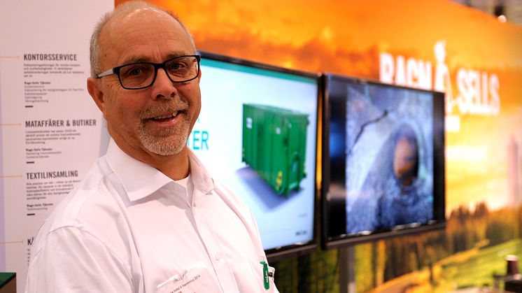 Ett tydligt exempel på att det finns många gemensamma beröringspunkter mellan de olika mässorna får vi när vi på Elmia Avfall & Återvinning besöker Ragn-Sells monter för att prata med Kjell Gustafsson. – Jag borde nog egentligen stått nere på VA-mässan, skrattar han.