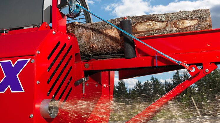 På SkogsElmia presenterar Trejon en ny vedprocessor, avsedd för den växande brasvedsmarknaden. Den klarar stockar med en diameter upp till 50 cm, kapar med ställbar längd 20-60 cm, och klyver i upp till tolv delar. Det är med andra ord ved till försäljning i 40-liters nätkassar i varuhus och på bensinmackar.