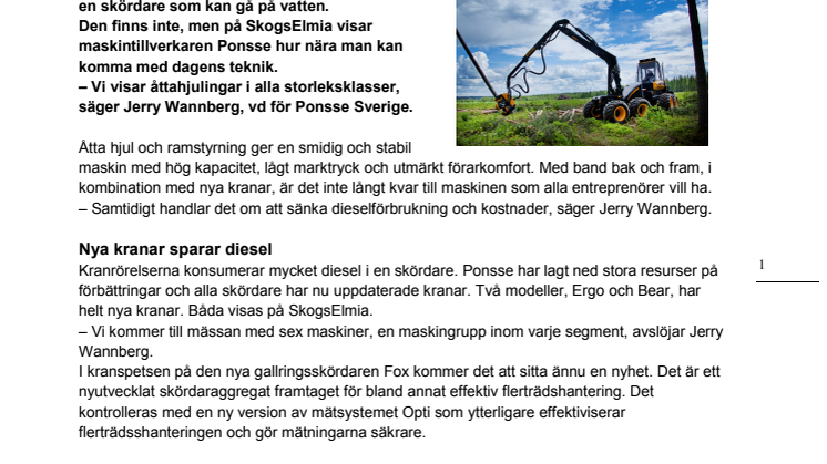 Ponsse visar sitt produktprogram på SkogsElmia 26-28 maj.