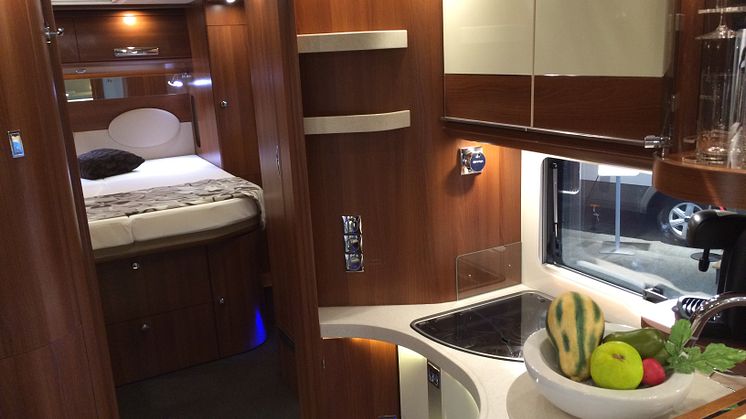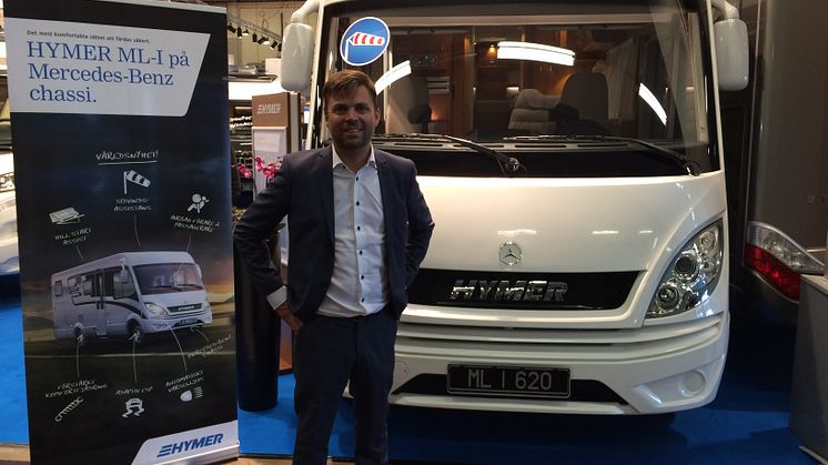 Mikael Blomqvist visar den nya planlösningen i en av husvagnarna i GLE-serien.