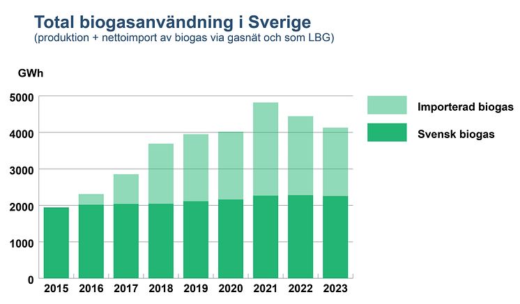 Total biogasanvändning i Sverige 2023