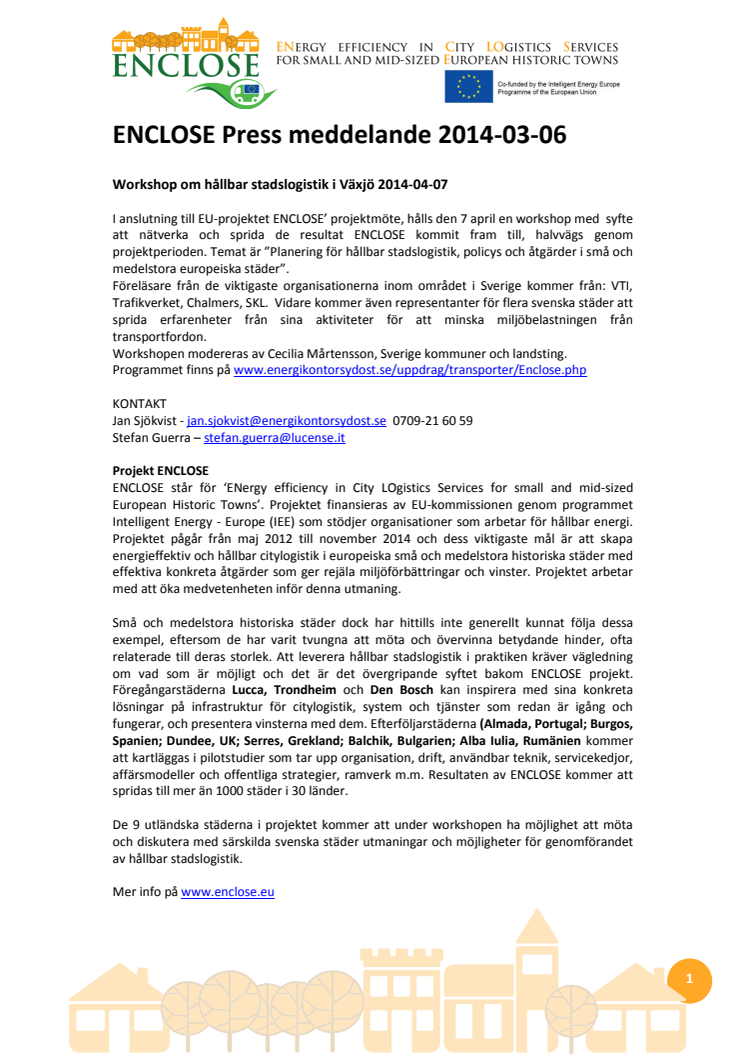 Att planera för effektiva och miljövänliga transporter i historiskt intressanta småstäder kräver speciella anpassningar. På måndag träffas representanter från flera svenska och europeiska kommuner, Trafikverket och Chalmers för att diskutera och utbyta erfarenheter kring detta, på en konferens i Växjö den 7 april.