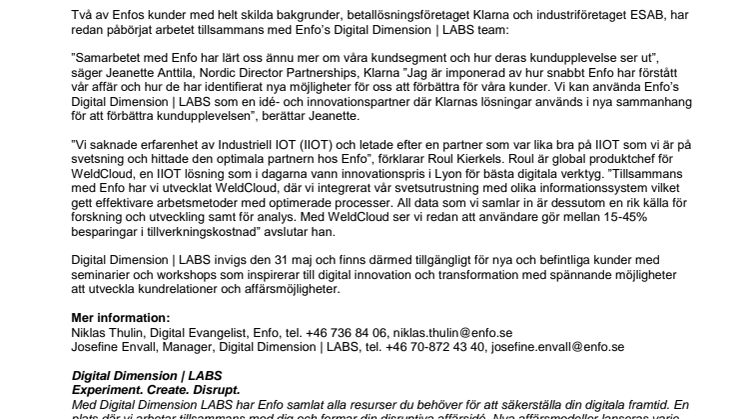 Josefine Envall, Manager, Digital Dimension | LABS, tel. +46 70-872 43 40, josefine.envall@enfo.se