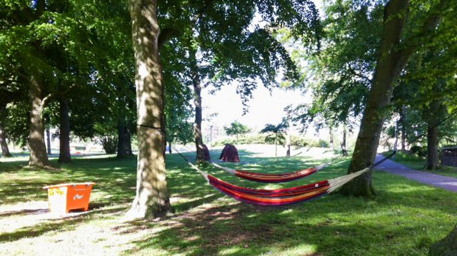 I Hängmattebiblioteket kan du lägga dig i en hängmatta eller vila i någon av våra andra nya sitt- och liggmöbler och samtidigt läsa en bok från biblioteket. I en låda hittar du pocketböcker som du gärna får läsa i parken.