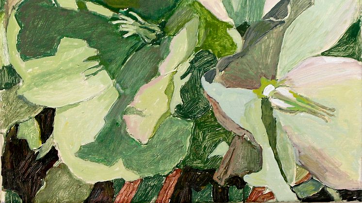 Vi kommer att få se nya fönsterspeglingar och även motiv från naturen, motiv som hon hämtar i sin nära omgivning och sedan målar på duk.