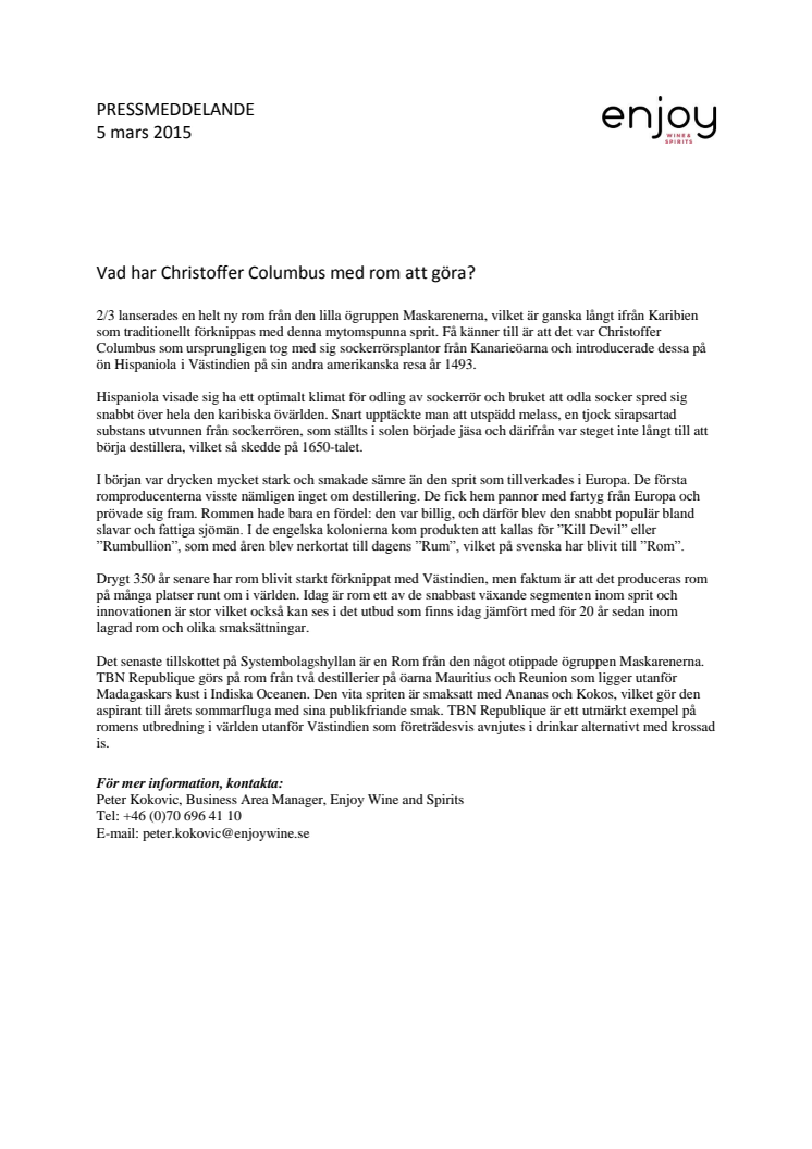 2/3 lanserades en helt ny rom från den lilla ögruppen Maskarenerna, vilket är ganska långt ifrån Karibien som traditionellt förknippas med denna mytomspunna sprit. Få känner till är att det var Christoffer Columbus som ursprungligen tog med sig sockerrörsplantor från Kanarieöarna och introducerade dessa på ön Hispaniola i Västindien på sin andra amerikanska resa år 1493.