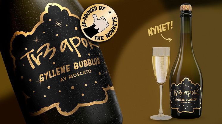 Snacka om att göra entré med stil. Nu är äntligen Gyllene bubblor här! Ett friskt och pärlande bubbel av Moscato som smakar päron, fläder och honung. Tr3 Apor Gyllene bubblor kostar 79 kronor och finns nu att beställa på systembolaget.se