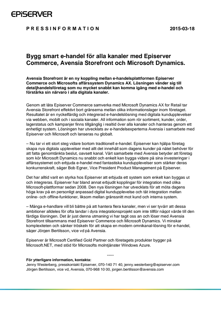 Bygg smart e-handel för alla kanaler med Episerver Commerce, Avensia Storefront och Microsoft Dynamics.