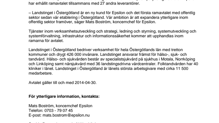 Konsultföretaget Epsilon är ett av Sveriges största företag inom teknik- och systemutveckling. Nu står det klart att bolaget har slutit ett ramavtal med Landstinget i Östergötland.