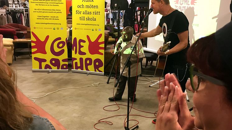 I Sverige ser vi det som självklart att alla kan och ska gå i skolan, men så är det inte överallt. Bland barn med funktionsnedsättningar i utvecklingsländer är det bara en av tio som får chansen. Med Come Together förändrar vi detta genom musik och kommunikation kombinerat med arbete på lokal nivå i Tanzania och Rwanda. Projektet är ett samarbete mellan Erikshjälpen och Riksförbundet FUB finansierat av Svenska PostkodLotteriet.