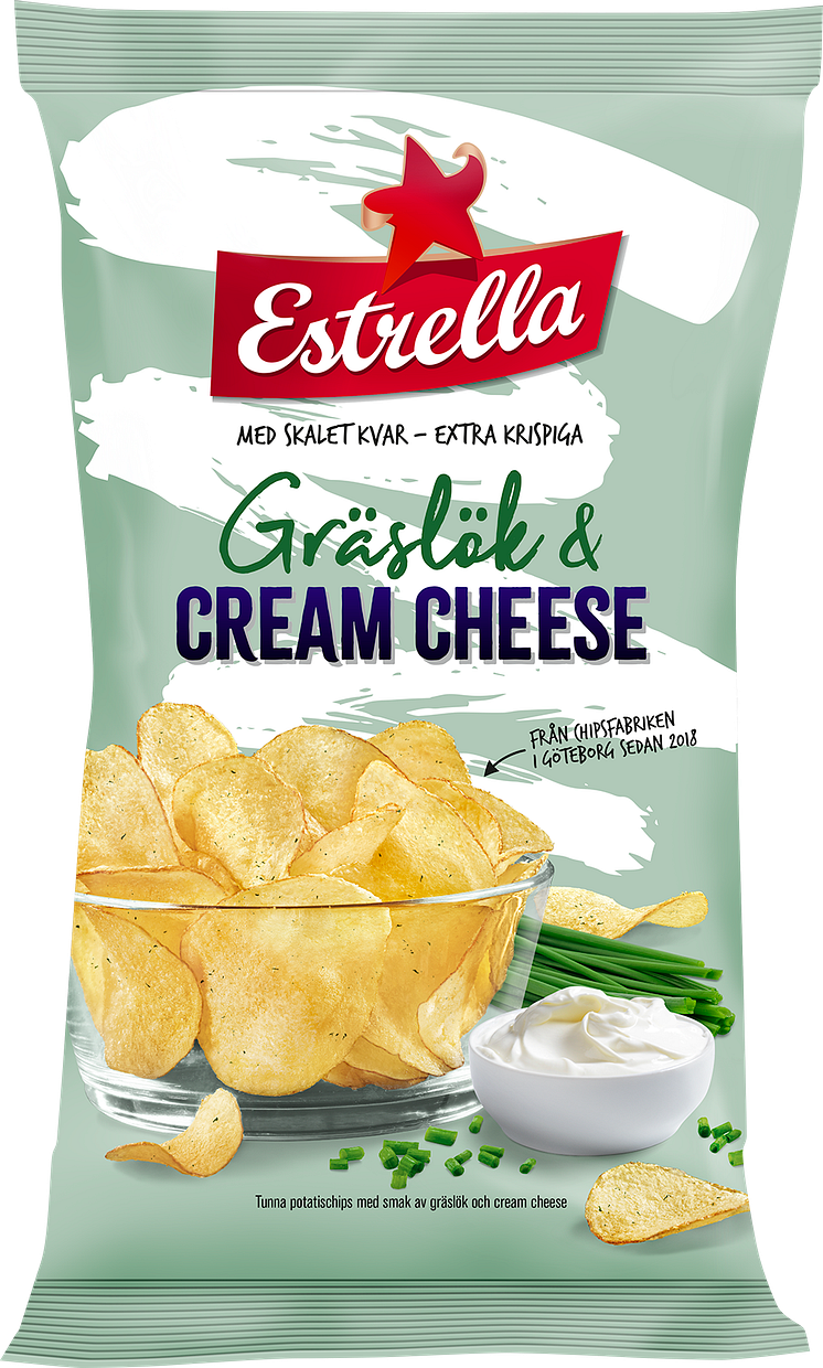 Estrella potatischips Gräslök & Cream Cheese, 2018
