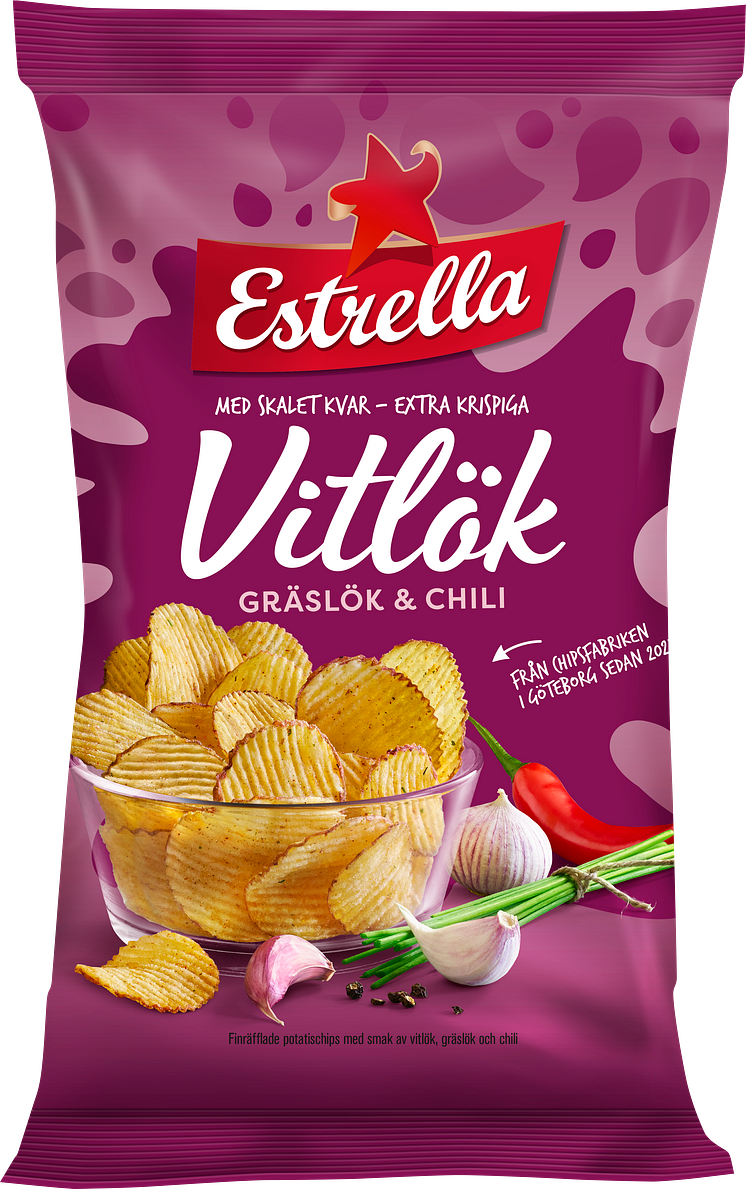 Estrella Potatischips Vitlök, Gräslök & Chili 2021